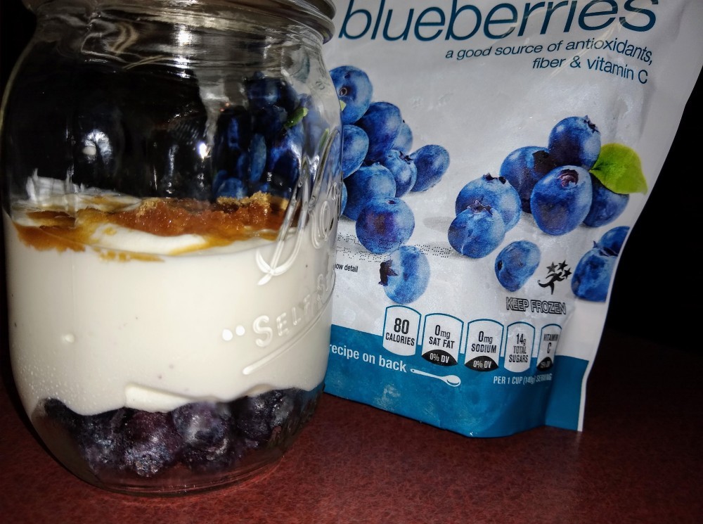 Feeling Creamy Berry Yogurt; Fat-Free Plain Greek Yogurt, blueberries, Lite brown sugar, & cinnamon. Lean Beef Jerky; Click this link for “Devara’s Kicken Hot Spicy Beef Jerky” 1% Cottage Cheese with tomatoes or pears